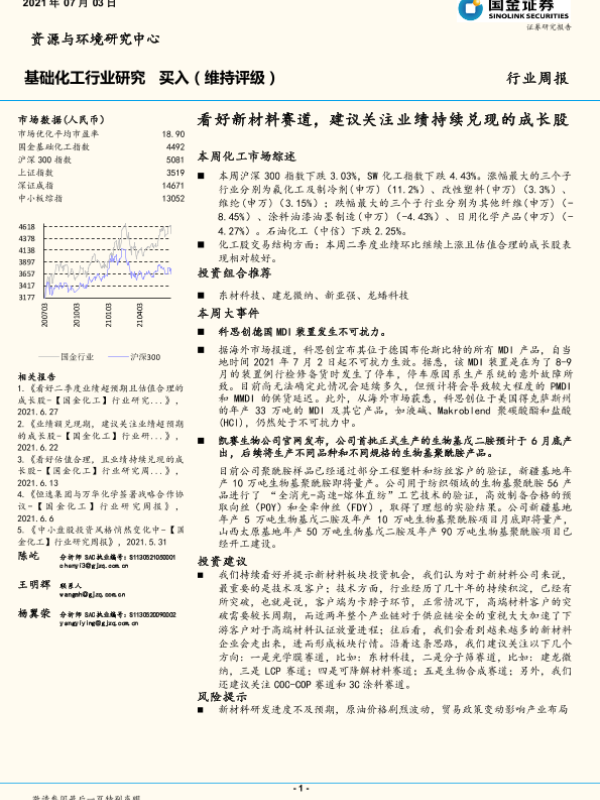 【国金证券】【20210703】基础化工行业研究:看好新材料赛道,建议关注业绩持续兑现的成长股-17页