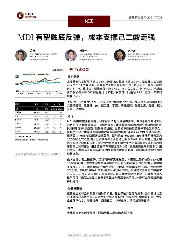 【中金公司】【20210705】20210705-中金公司-化工行业:MDI有望触底反弹,成本支撑己二酸走强-26页