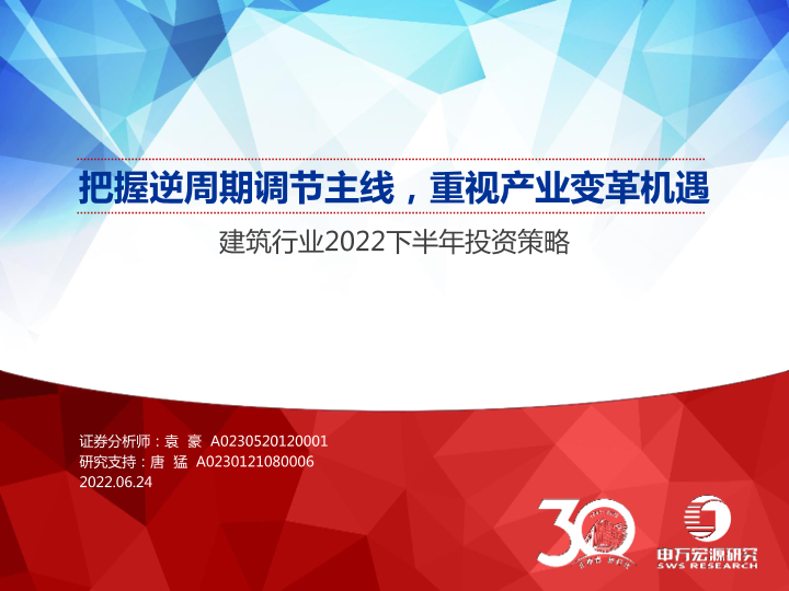 【申万宏源】【20220624】建筑行业2022下半年投资策略:把握逆周期调节主线,重视产业变革机遇-56页