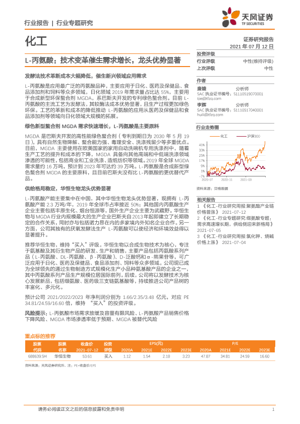 【天风证券】【20210712】L-丙氨酸:技术变革催生需求增长,龙头优势显著-12页
