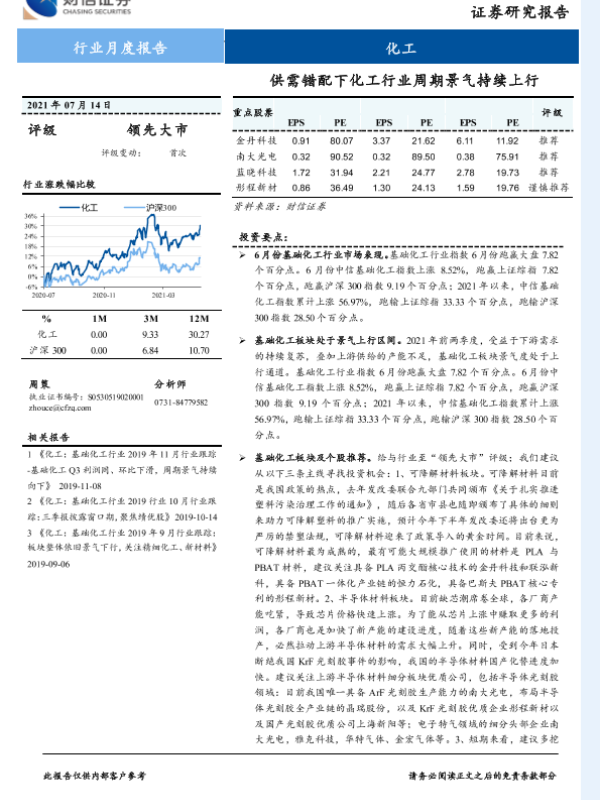 【财信证券】【20210714】20210714-财信证券-化工行业月度报告:供需错配下化工行业周期景气持续上行-13页