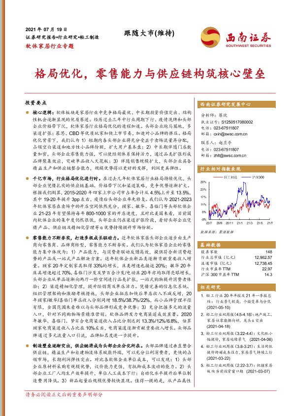 【西南证券】【20210719】软体家居行业专题:格局优化,零售能力与供应链构筑核心壁垒-30页