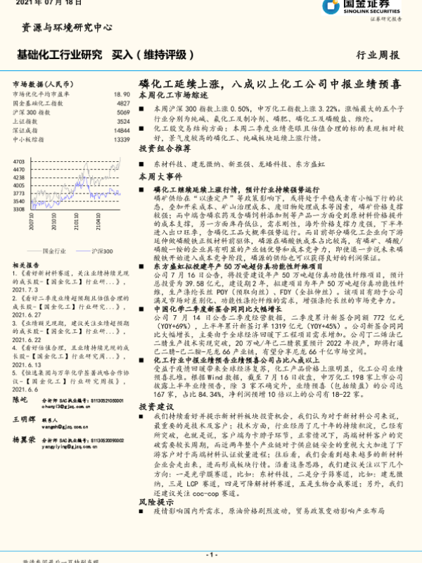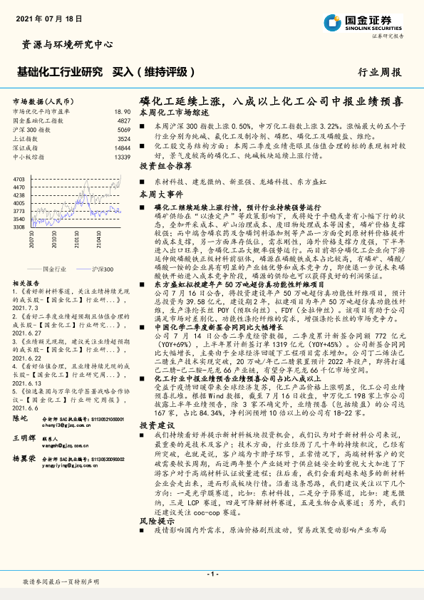 【国金证券】【20210718】基础化工行业研究:磷化工延续上涨,八成以上化工公司中报业绩预喜-20页