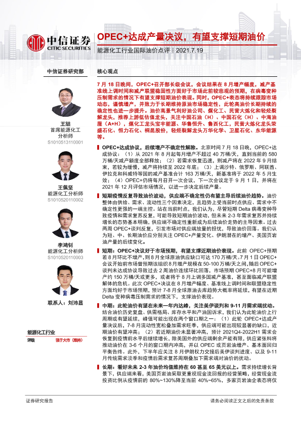 【中信证券】【20210719】OPEC+达成产量决议,有望支撑短期油价-4页