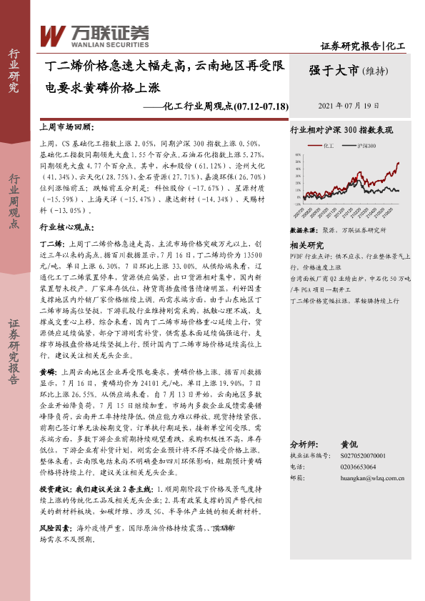 【万联证券】【20210719】丁二烯价格急速大幅走高,云南地区再受限电要求黄磷价格上涨-11页