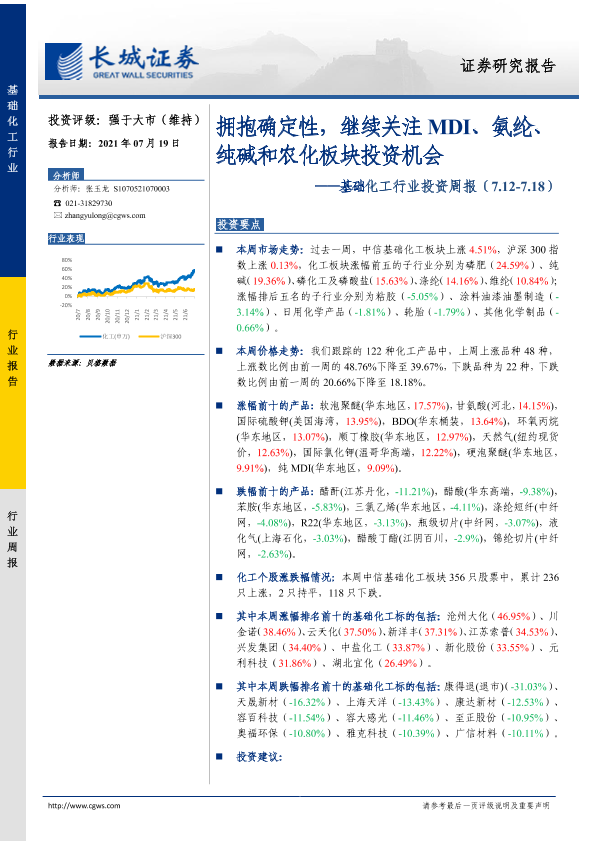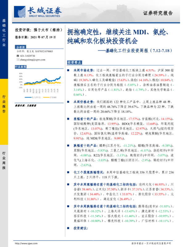 【长城证券】【20210719】20210719-长城证券-基础化工行业投资周报:拥抱确定性,继续关注MDI、氨纶、纯碱和农化板块投资机会-28页