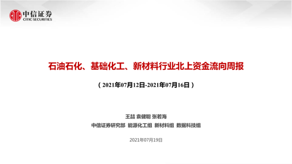 【中信证券】【20210719】石油石化、基础化工、新材料行业北上资金流向周报-31页