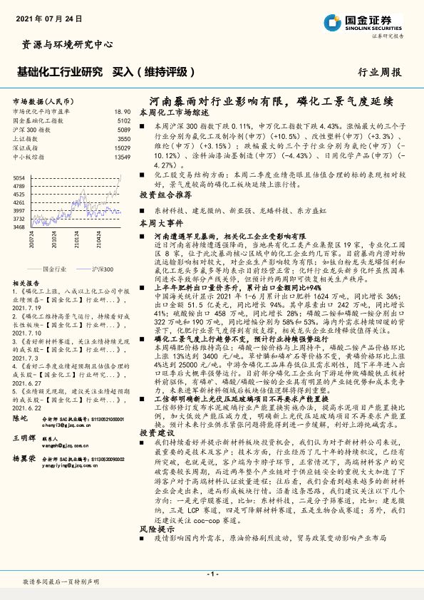 【国金证券】【20210724】基础化工行业研究:河南暴雨对行业影响有限,磷化工景气度延续-23页