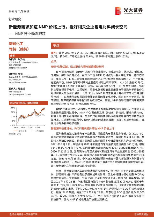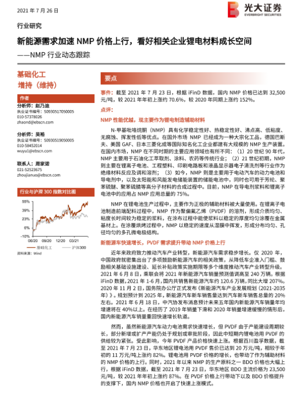 【光大证券】【20210726】NMP行业动态跟踪:新能源需求加速NMP价格上行,看好相关企业锂电材料成长空间-3页