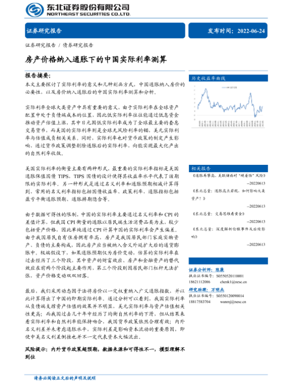 【东北证券】【20220624】房产价格纳入通胀下的中国实际利率测算-32页