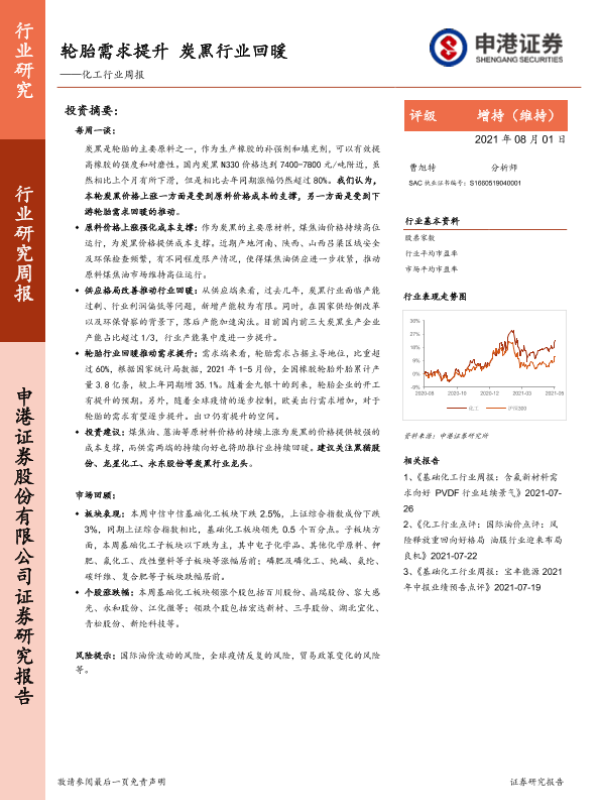 【申港证券】【20210801】20210801-申港证券-化工行业周报:轮胎需求提升 炭黑行业回暖-13页