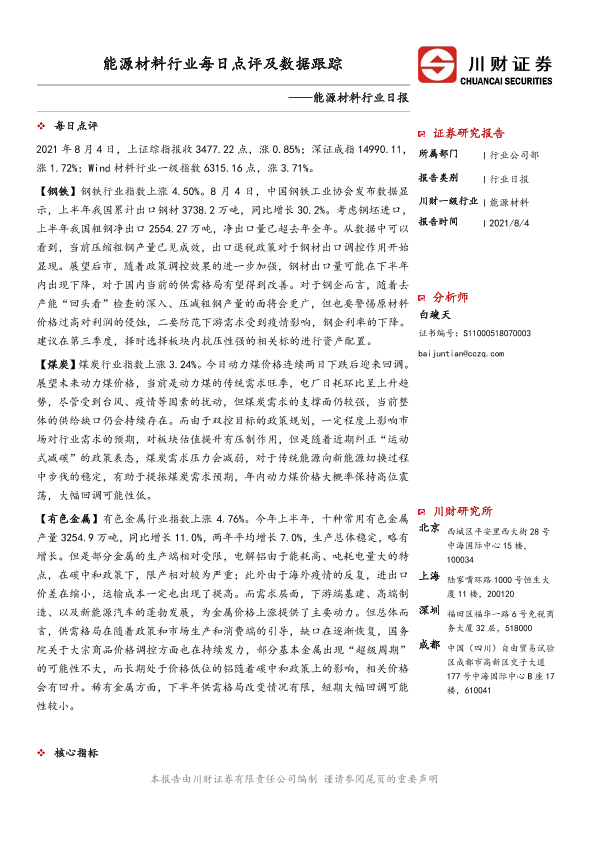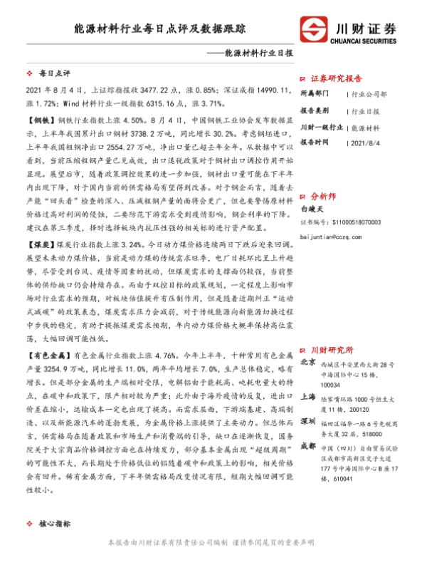 【川财证券】【20210804】20210804-川财证券-能源材料行业日报:能源材料行业每日点评及数据跟踪-4页
