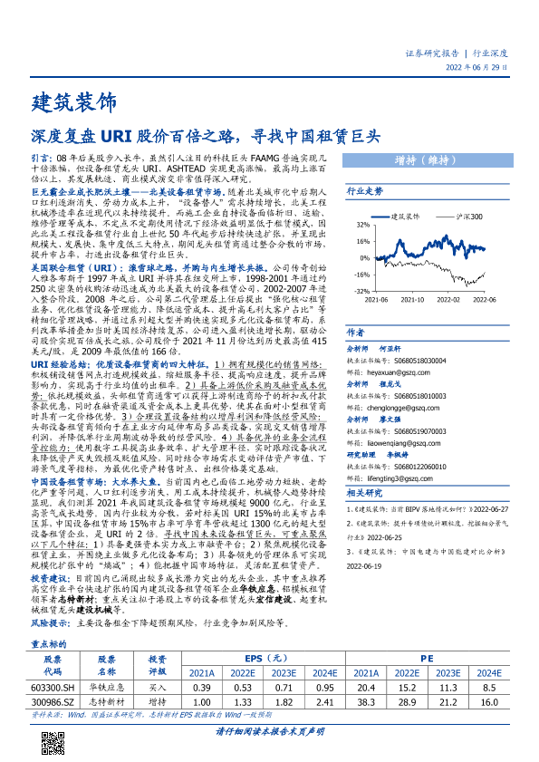 【国盛证券】【20220629】建筑装饰行业:深度复盘URI股价百倍之路,寻找中国租赁巨头-41页