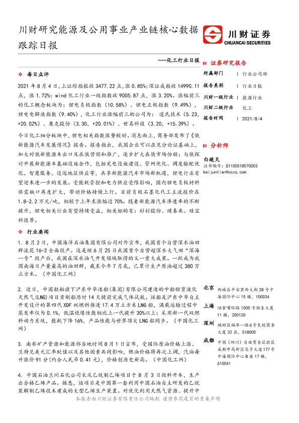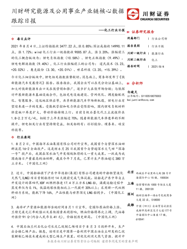 【川财证券】【20210804】化工行业日报:川财研究能源及公用事业产业链核心数据跟踪日报-4页
