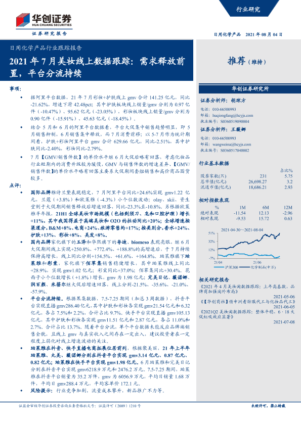 【华创证券】【20210804】2021年7月美妆线上数据跟踪:需求释放前置,平台分流持续-8页