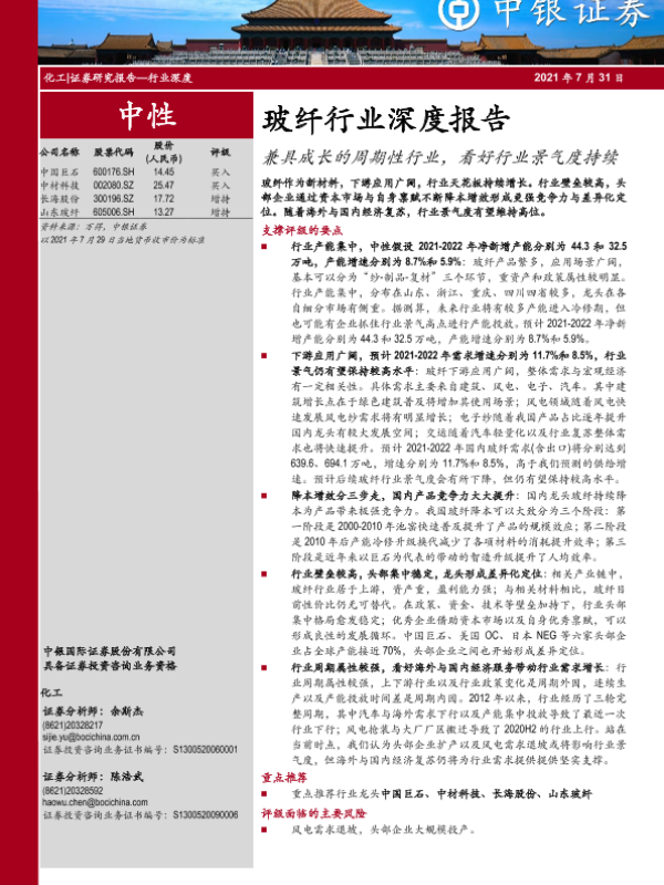 【中银证券】【20210731】20210731-中银证券-玻纤行业深度报告:兼具成长的周期性行业,看好行业景气度持续-78页