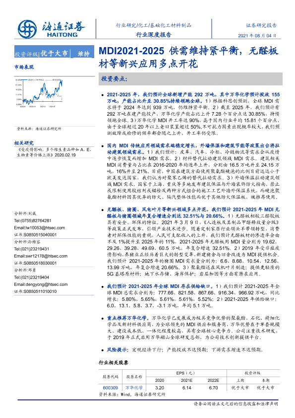 【海通证券】【20210804】基础化工材料制品行业深度报告:MDI2021-2025供需维持紧平衡,无醛板材等新兴应用多点开花-25页