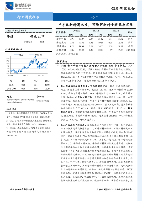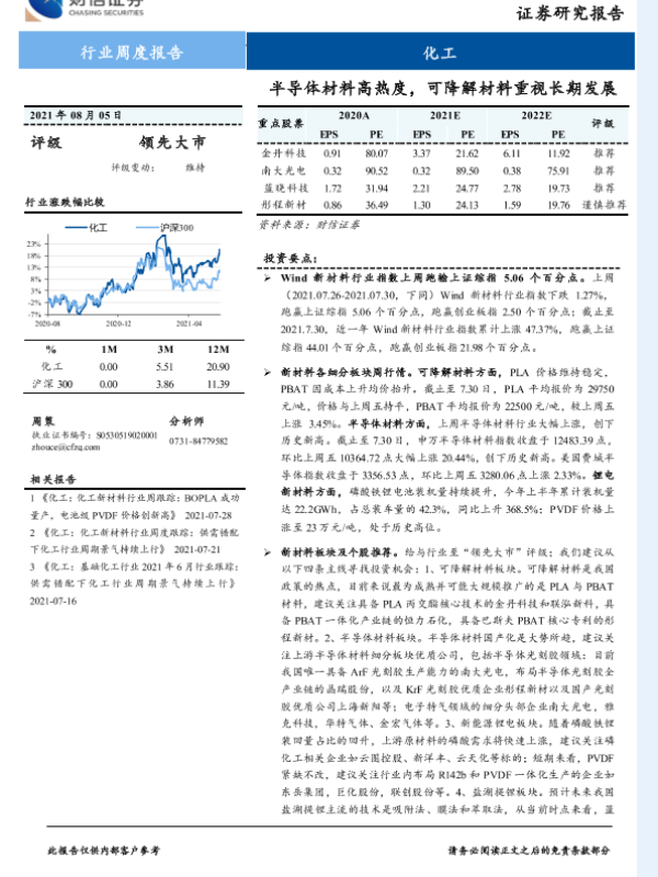 【财信证券】【20210805】20210805-财信证券-化工行业周度报告:半导体材料高热度,可降解材料重视长期发展-19页