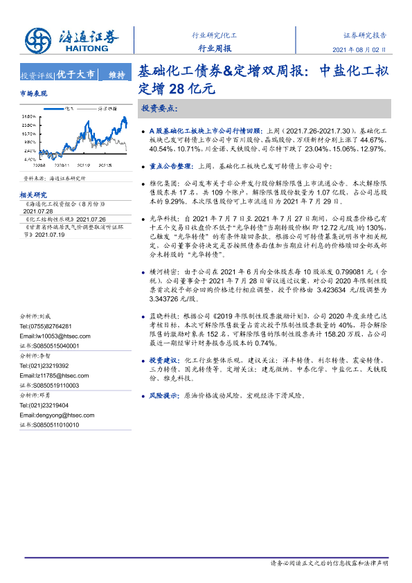 【海通证券】【20210802】基础化工债券&定增双周报:中盐化工拟定增28亿元-15页