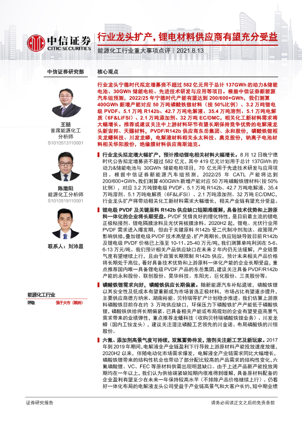 【中信证券】【20210813】能源化工行业重大事项点评:行业龙头扩产,锂电材料供应商有望充分受益-3页