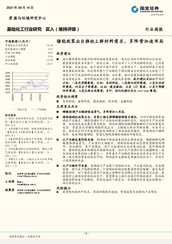 【国金证券】【20210814】基础化工行业研究:储能政策出台推动上游材料需求,多阵营加速布局-30页