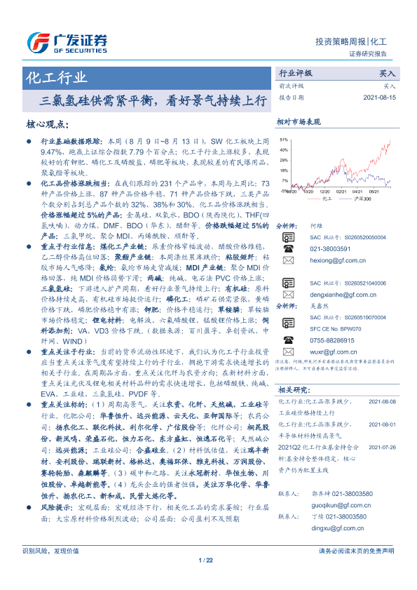 【广发证券】【20210815】20210815-广发证券-化工行业投资策略周报:三氯氢硅供需紧平衡,看好景气持续上行-22页