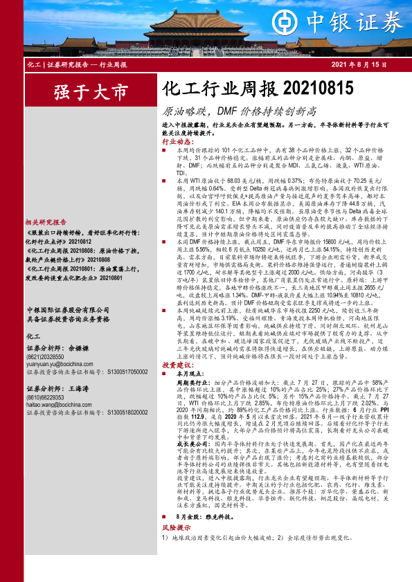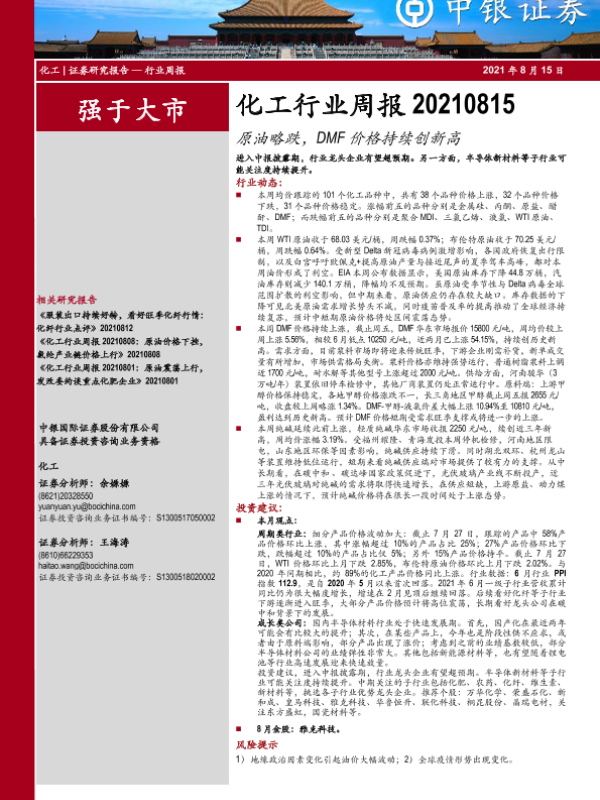 【中银证券】【20210815】20210815-中银证券-化工行业周报:原油略跌,DMF价格持续创新高-11页
