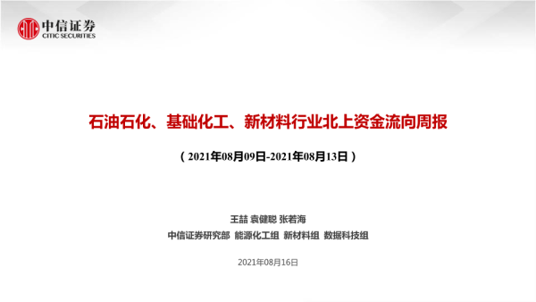 【中信证券】【20210816】石油石化、基础化工、新材料行业北上资金流向周报-31页