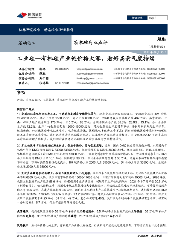 【国信证券】【20210823】20210823-国信证券-有机硅行业点评:工业硅-有机硅产业链价格大涨,看好高景气度持续-7页