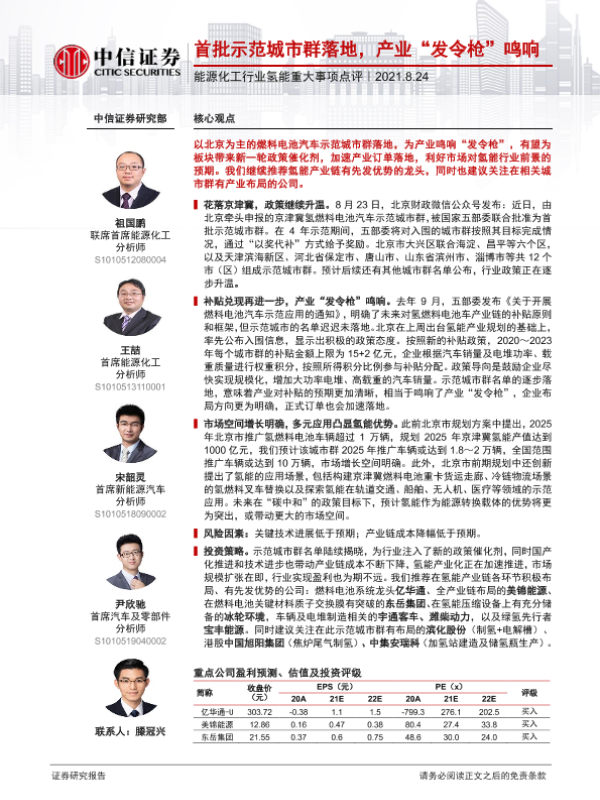 【中信证券】【20210824】能源化工行业氢能重大事项点评:首批示范城市群落地,产业“发令枪”鸣响-3页