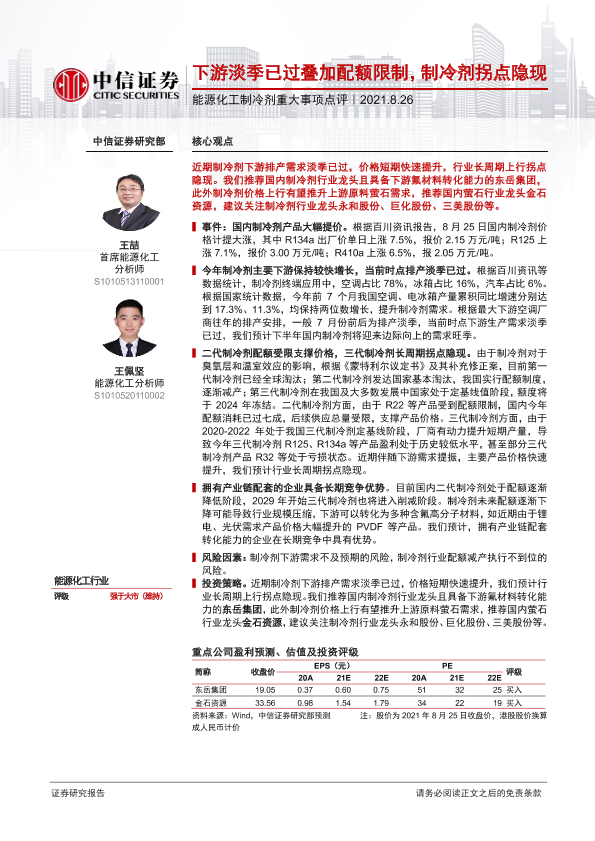 【中信证券】【20210826】能源化工制冷剂重大事项点评:下游淡季已过叠加配额限制,制冷剂拐点隐现-2页