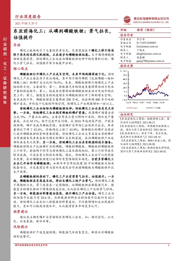 【东亚前海证券】【20210829】东亚前海证券-化工行业深度报告:从磷到磷酸铁锂:景气拉长,估值提升-21页