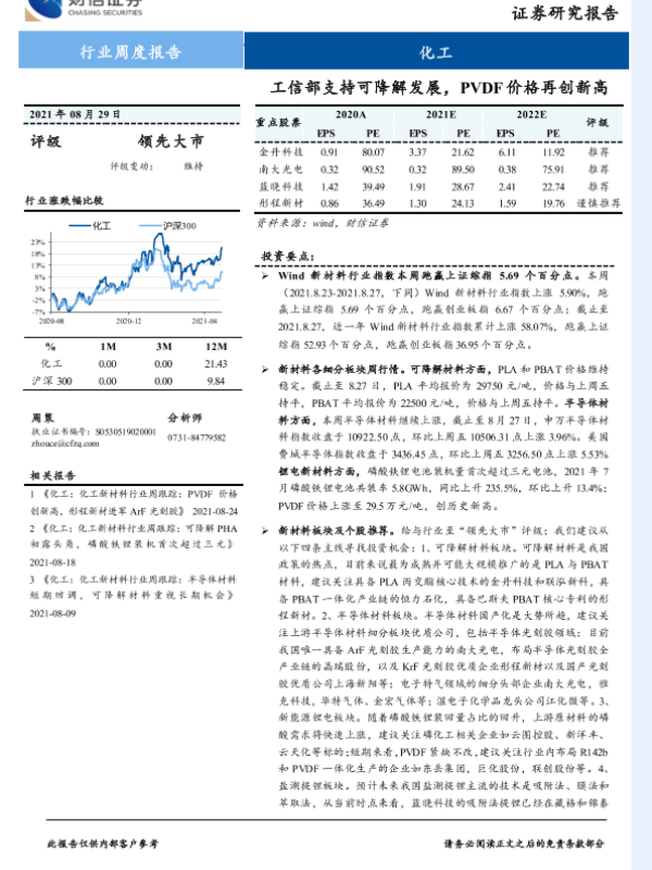 【财信证券】【20210829】化工行业周度报告:工信部支持可降解发展,PVDF价格再创新高-20页