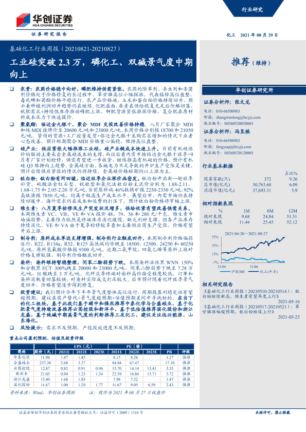【华创证券】【20210829】基础化工行业周报:工业硅突破2.3万,磷化工、双碱景气度中期向上-22页