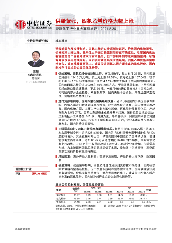 【中信证券】【20210830】供给紧张,四氯乙烯价格大幅上涨-2页