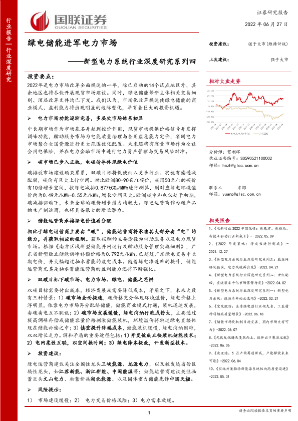 【国联证券】【20220627】新型电力系统行业深度研究系列四:绿电储能进军电力市场-44页