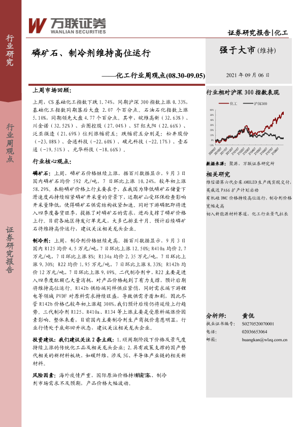 【万联证券】【20210906】20210906-万联证券-化工行业周观点:磷矿石、制冷剂维持高位运行-11页