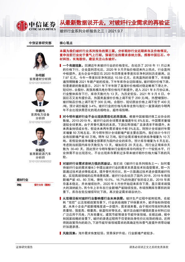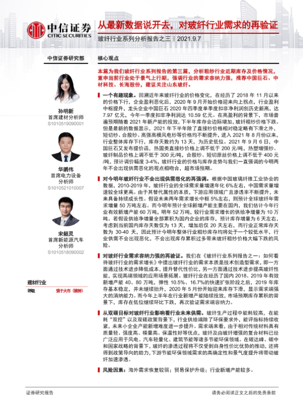 【中信证券】【20210907】20210907-中信证券-玻纤行业系列分析报告之三:从最新数据说开去,对玻纤行业需求的再验证-11页