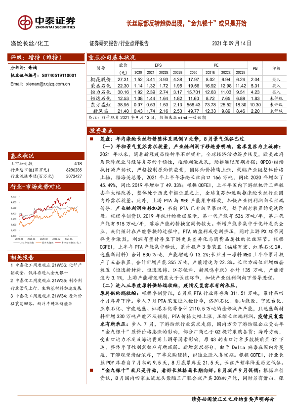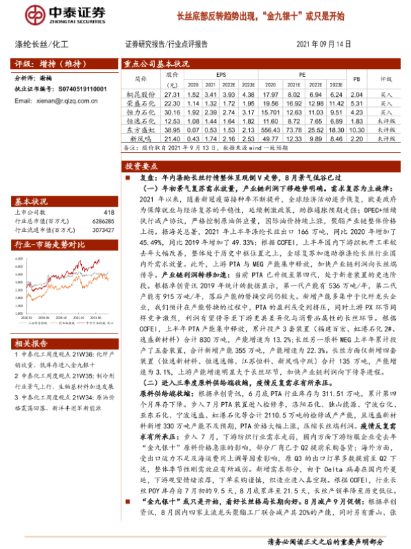 【中泰证券】【20210914】20210914-中泰证券-化工:长丝底部反转趋势出现,“金九银十”或只是开始-11页
