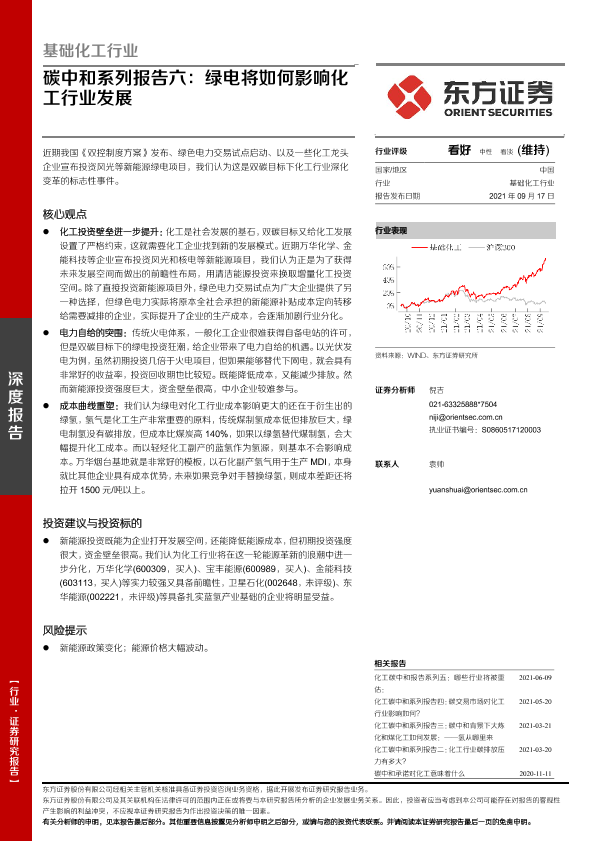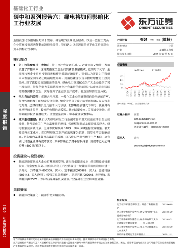 【东方证券】【20210917】基础化工行业-碳中和系列报告六:绿电将如何影响化工行业发展-11页
