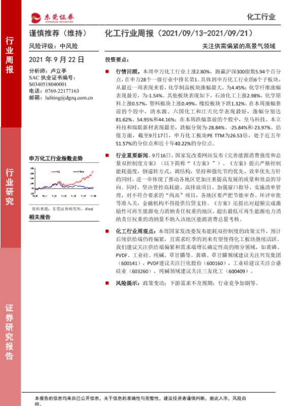 【东莞证券】【20210922】20210922-东莞证券-化工行业周报:关注供需偏紧的高景气领域-11页