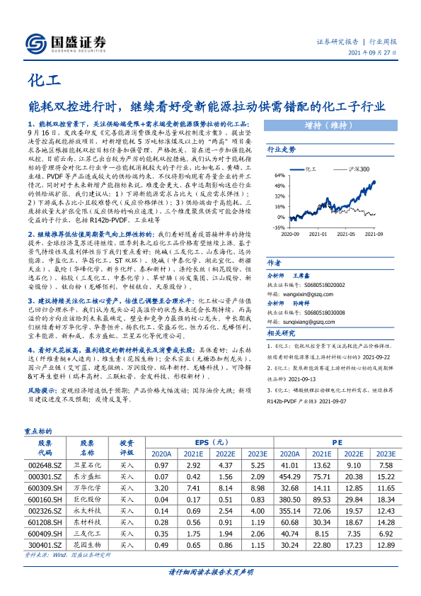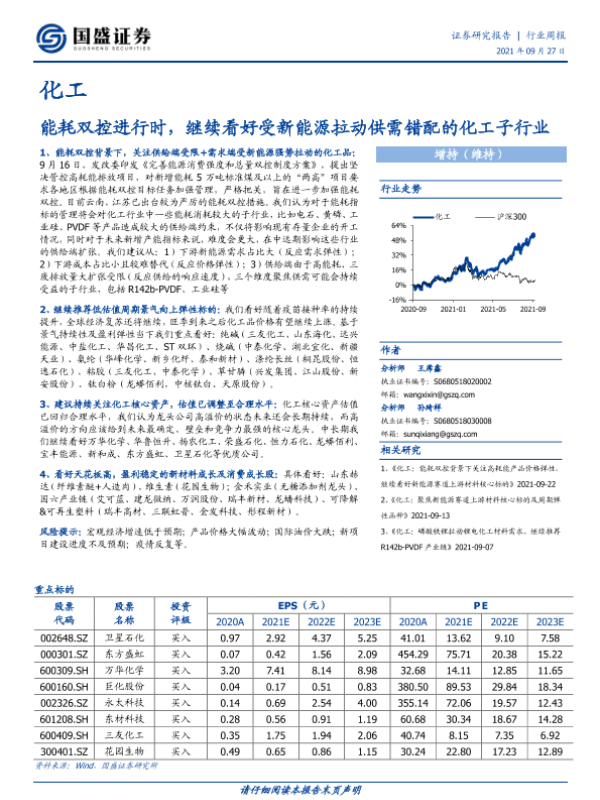【国盛证券】【20210927】20210927-国盛证券-化工行业周报:能耗双控进行时,继续看好受新能源拉动供需错配的化工子行业-10页