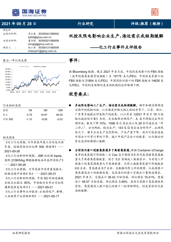 【国海证券】【20210928】化工行业事件点评报告:双控及限电影响企业生产,海运需求或短期缓解-6页