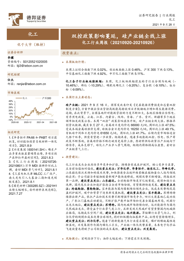【德邦证券】【20210928】20210928-德邦证券-化工行业周报:双控政策影响蔓延,硅产业链全线上涨-22页