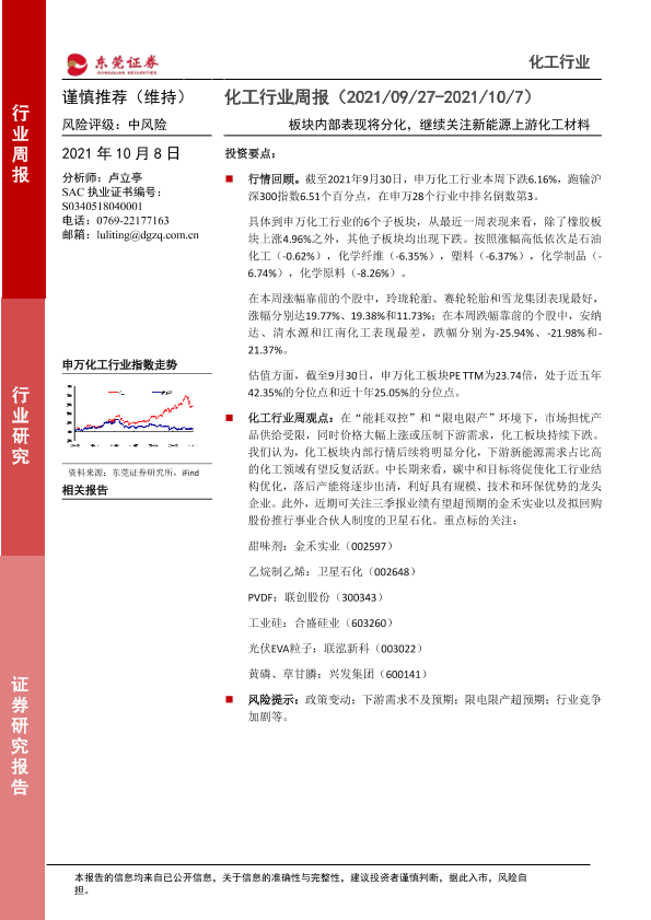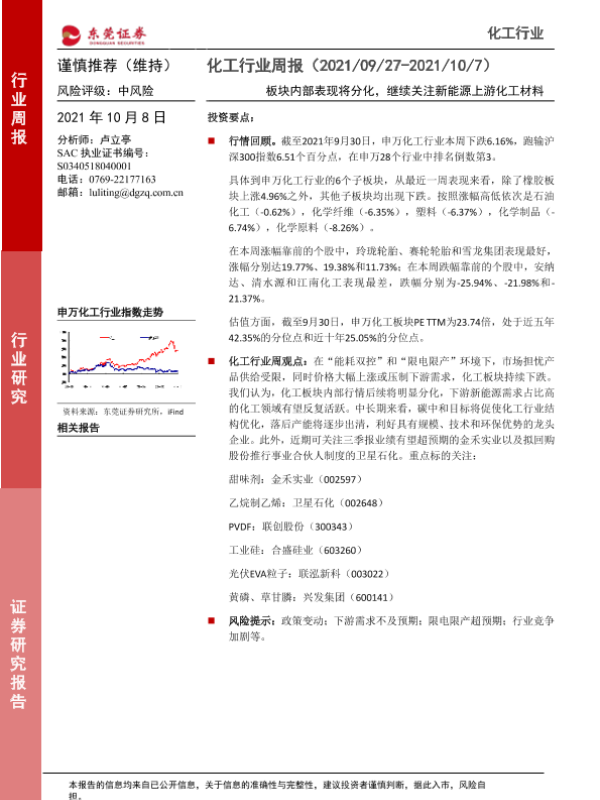【东莞证券】【20211008】20211008-东莞证券-化工行业周报:板块内部表现将分化,继续关注新能源上游化工材料-11页