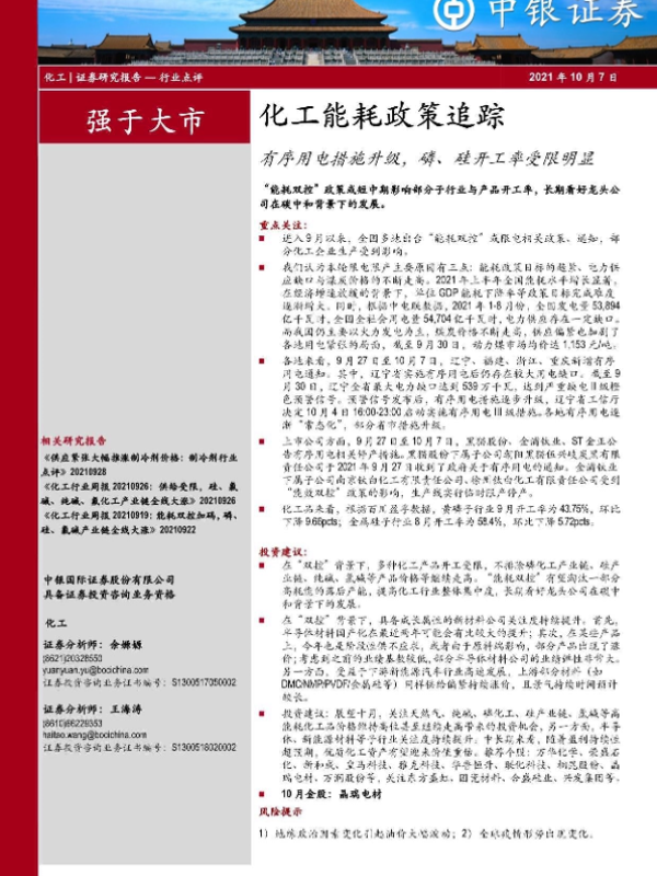 【中银证券】【20211007】化工能耗政策追踪:有序用电措施升级,磷、硅开工率受限明显-11页