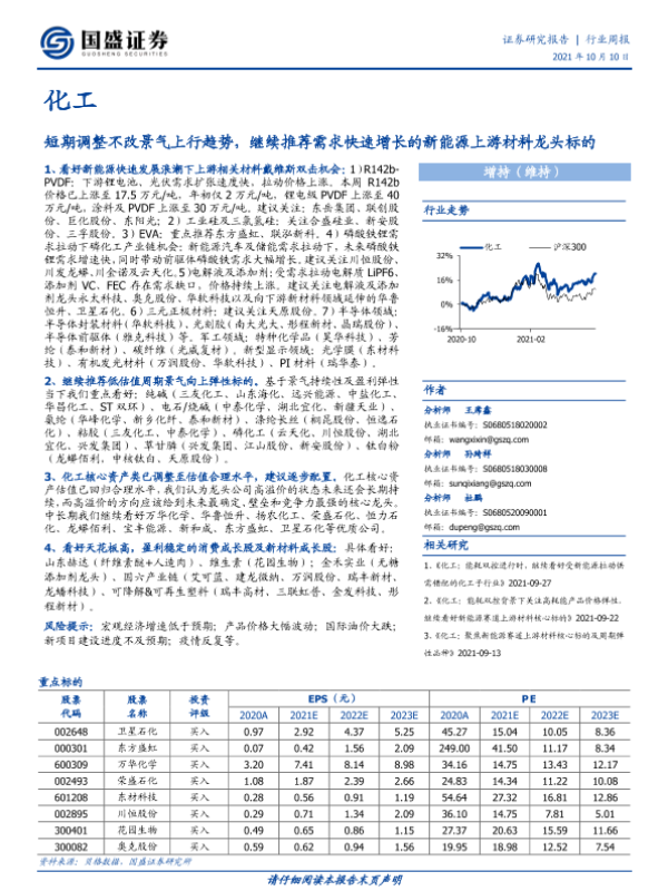 【国盛证券】【20211010】20211010-国盛证券-化工行业周报:短期调整不改景气上行趋势,继续推荐需求快速增长的新能源上游材料龙头标的-13页