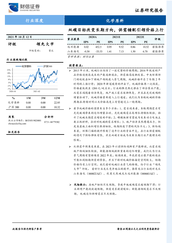 【财信证券】【20211012】化学原料:双碳目标改变长期方向,供需错配引领价格上行-14页