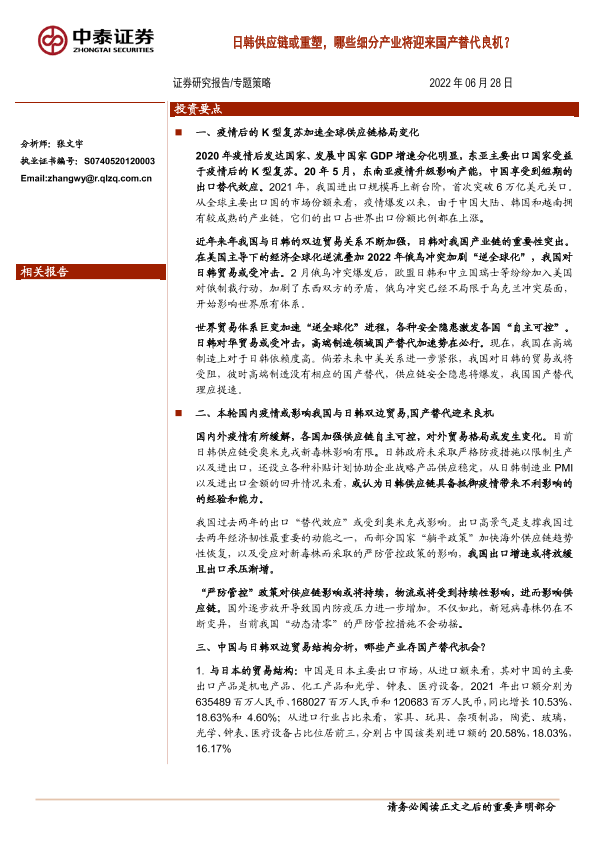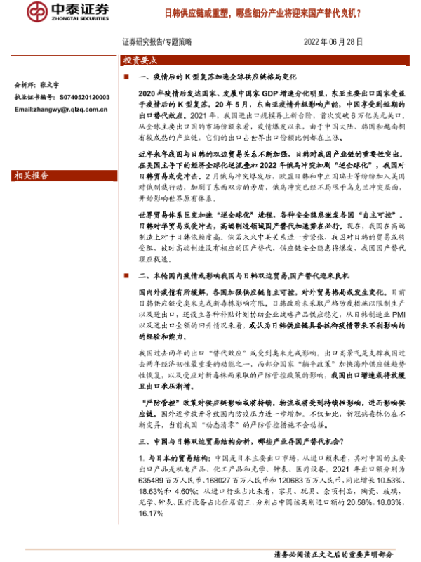 【中泰证券】【20220628】日韩供应链或重塑,哪些细分产业将迎来国产替代良机?-16页