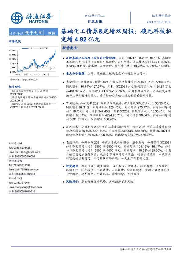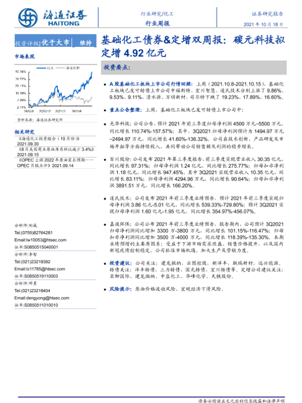 【海通证券】【20211018】20211018-海通证券-化工行业周报:基础化工债券&定增双周报:碳元科技拟定增4.92亿元-14页